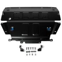 Стойкое порошковое окрашивание позволяет сохранить внешний вид, защитит от царапин, предотвратит коррозию. Также имеется утопленный крепеж для предотвращения срывов. Крепеж не образует с алюминием гальваническую пару. Защита спроектирована индивидуально для автомобиля, что позволяет устанавливать ее в штатные места без доработки кузова за 10 мин.