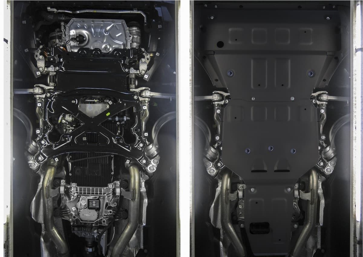 Защита проектируется при помощи лазерного 3D сканирования, с учетом особенностей днища автомобиля. Она не уменьшает клиренс и сохраняет другие штатные параметры.