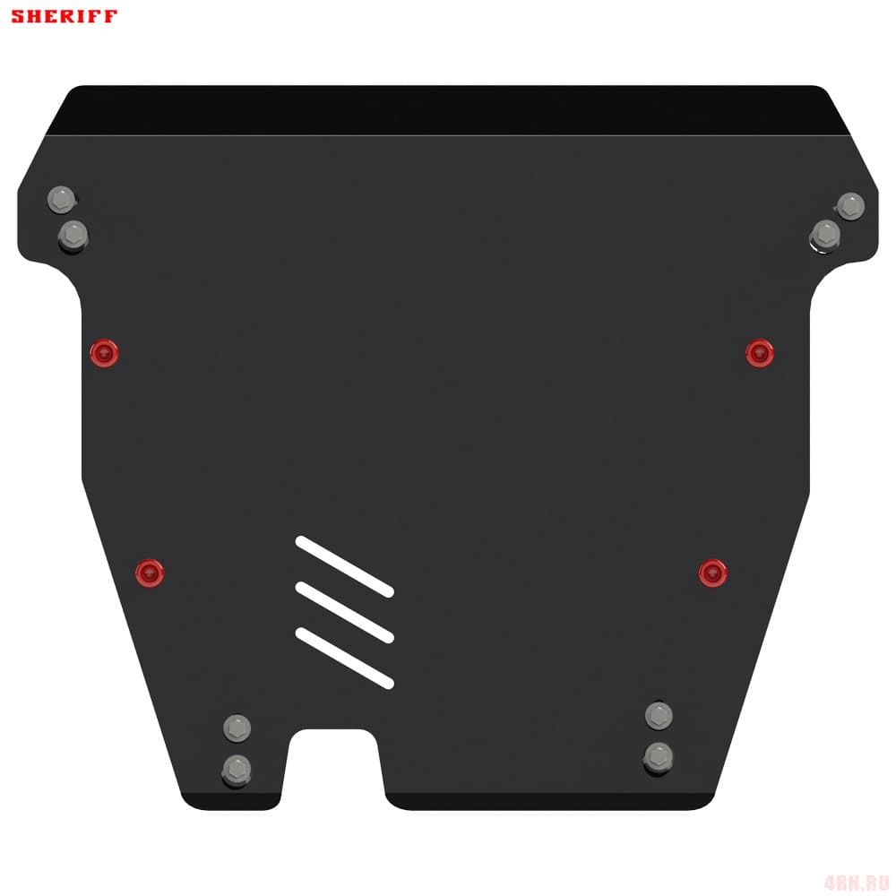 Защита картера Sheriff нужна для сохранности узлов и агрегатов, находящихся на днище авто. Она надежно защитит двигательный отсек вашей машины от повреждений. Также она защищает моторный отсек от влаги, грязи, и предусматривает наличие металлических крыльев, которые выполняют функцию пыльника.