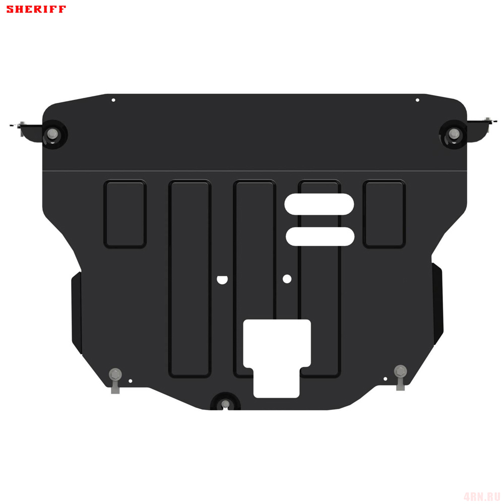 Защита картера Sheriff нужна для сохранности узлов и агрегатов, находящихся на днище авто. Она надежно защитит двигательный отсек вашей машины от повреждений. Также она защищает моторный отсек от влаги, грязи, и предусматривает наличие металлических крыльев, которые выполняют функцию пыльника.