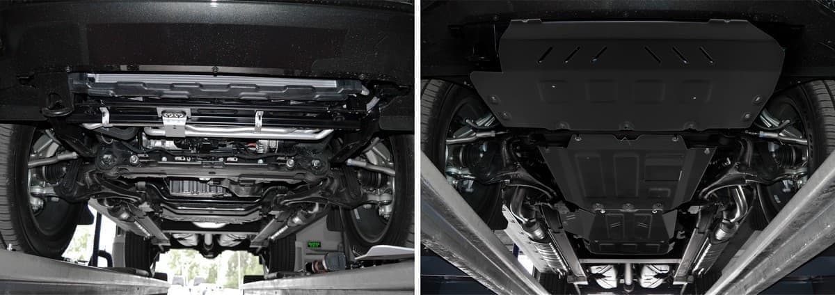Защита проектируется при помощи лазерного 3D сканирования, с учетом особенностей днища автомобиля. Она не уменьшает клиренс и сохраняет другие штатные параметры.