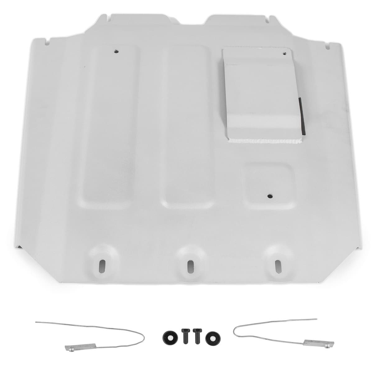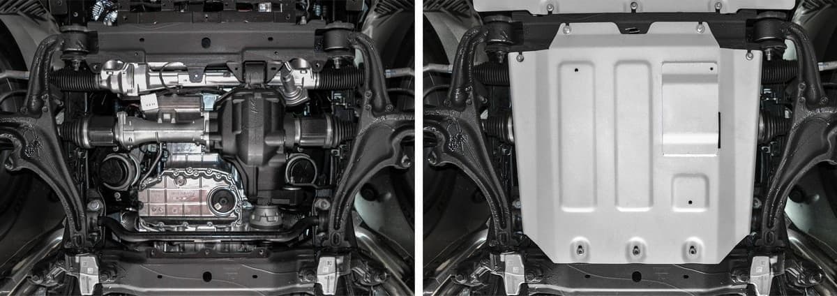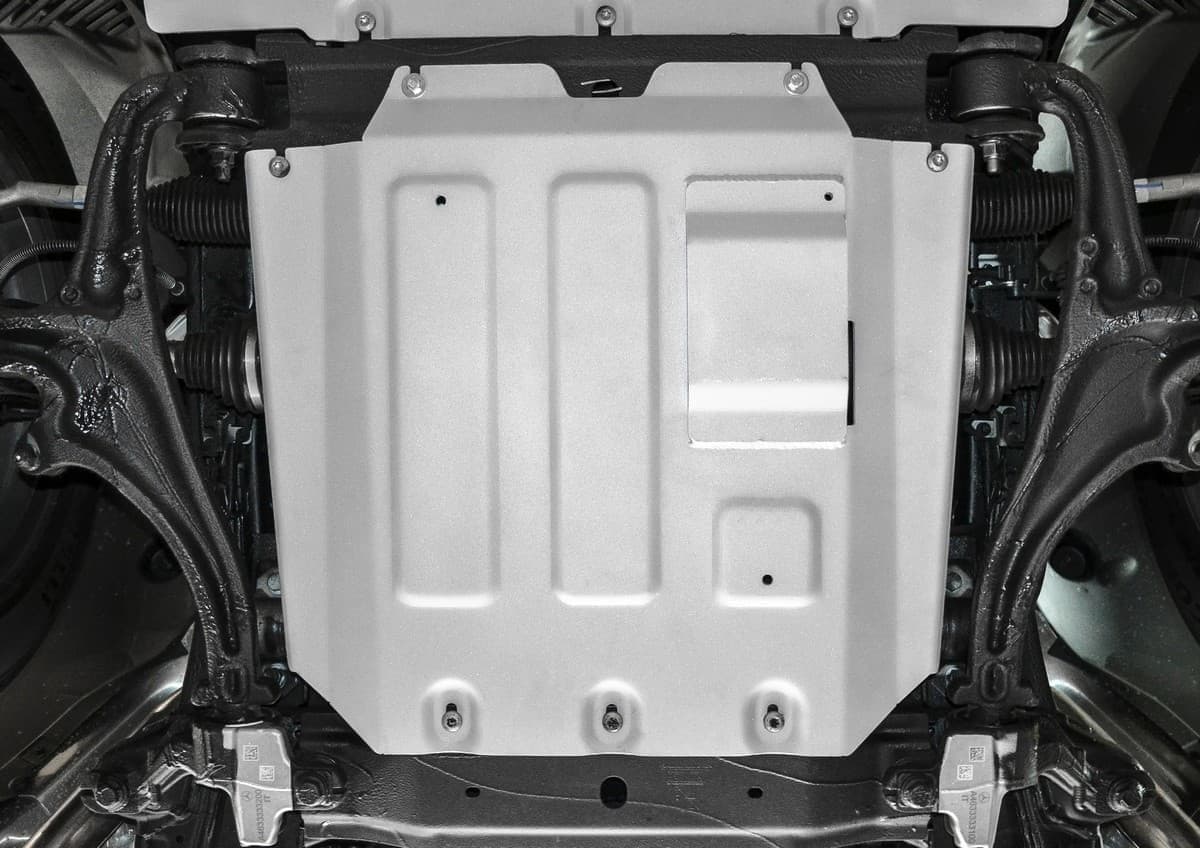 Стойкое порошковое окрашивание позволяет сохранить внешний вид, защитит от царапин, предотвратит коррозию. Также имеется утопленный крепеж для предотвращения срывов. Крепеж не образует с алюминием гальваническую пару. Защита спроектирована индивидуально для автомобиля, что позволяет устанавливать ее в штатные места без доработки кузова за 10 мин.