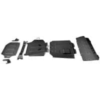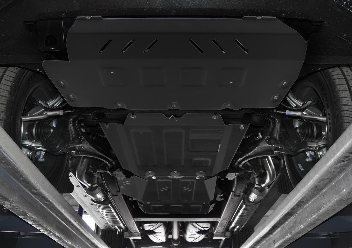 Порошковое окрашивание гарантирует долгий срок службы. А глубокий штамп увеличивает жесткость до 2,5 раз. Также имеется утопленный крепеж для предотвращения срывов. Качественная покраска защиты картера выдерживает 720 часов соляного тумана. Толщина изделия составляет 2-6 мм. Подштамповка в местах крепления предохраняет крепеж от срезания. Деталь спроектирована индивидуально для вашего автомобиля, что позволяет устанавливать ее в штатные места без доработки кузова за 10 мин.