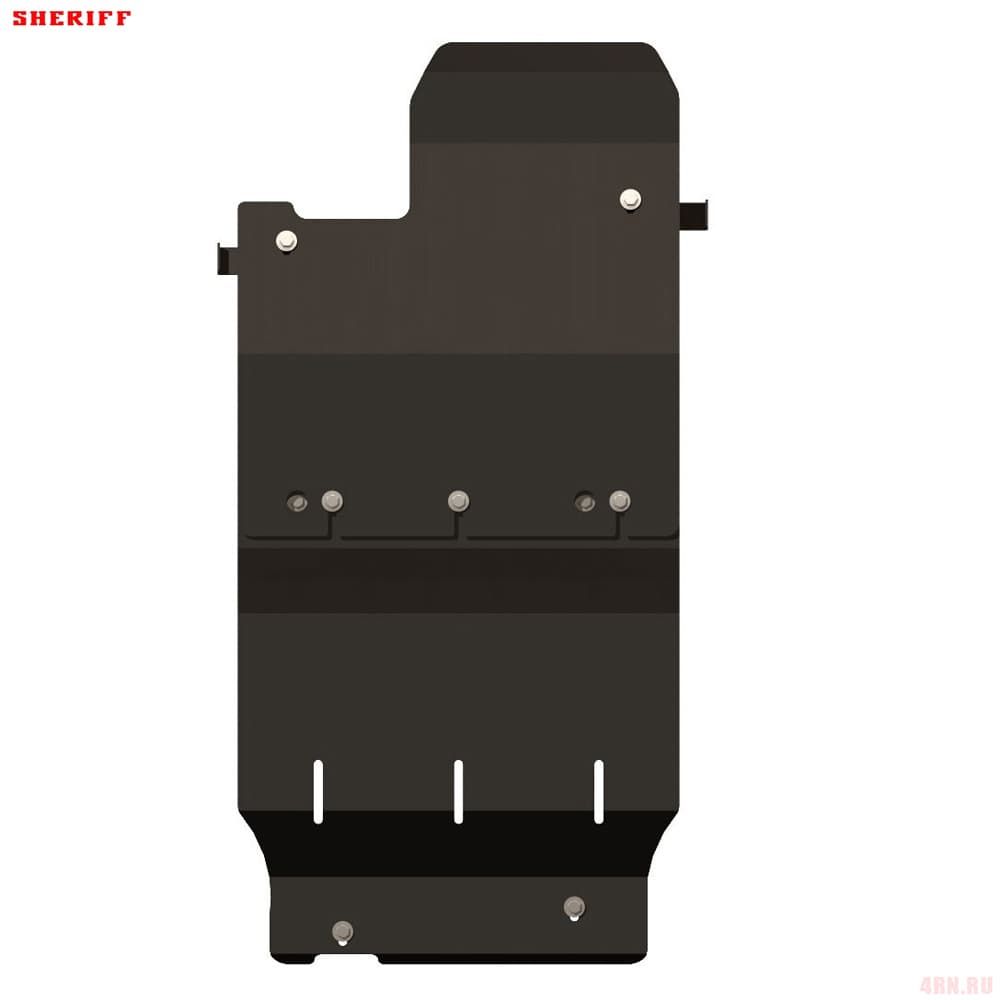 Защита картера Sheriff нужна для сохранности узлов и агрегатов, находящихся на днище авто. Она надежно защитит двигательный отсек вашей машины от повреждений. Также она защищает моторный отсек от влаги, грязи, и предусматривает наличие металлических крыльев, которые выполняют функцию пыльника.