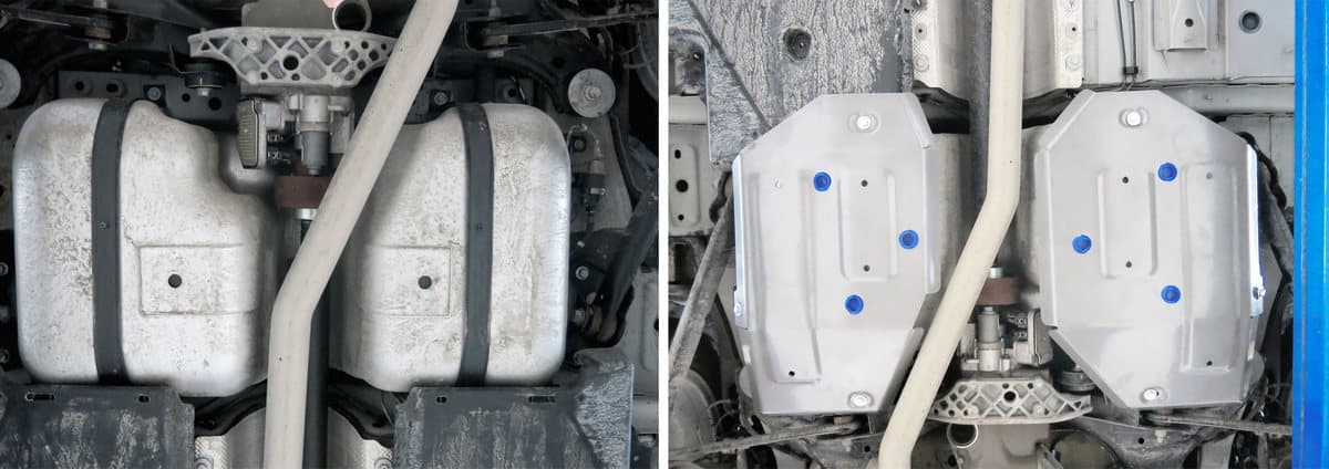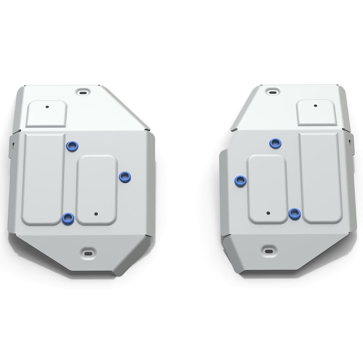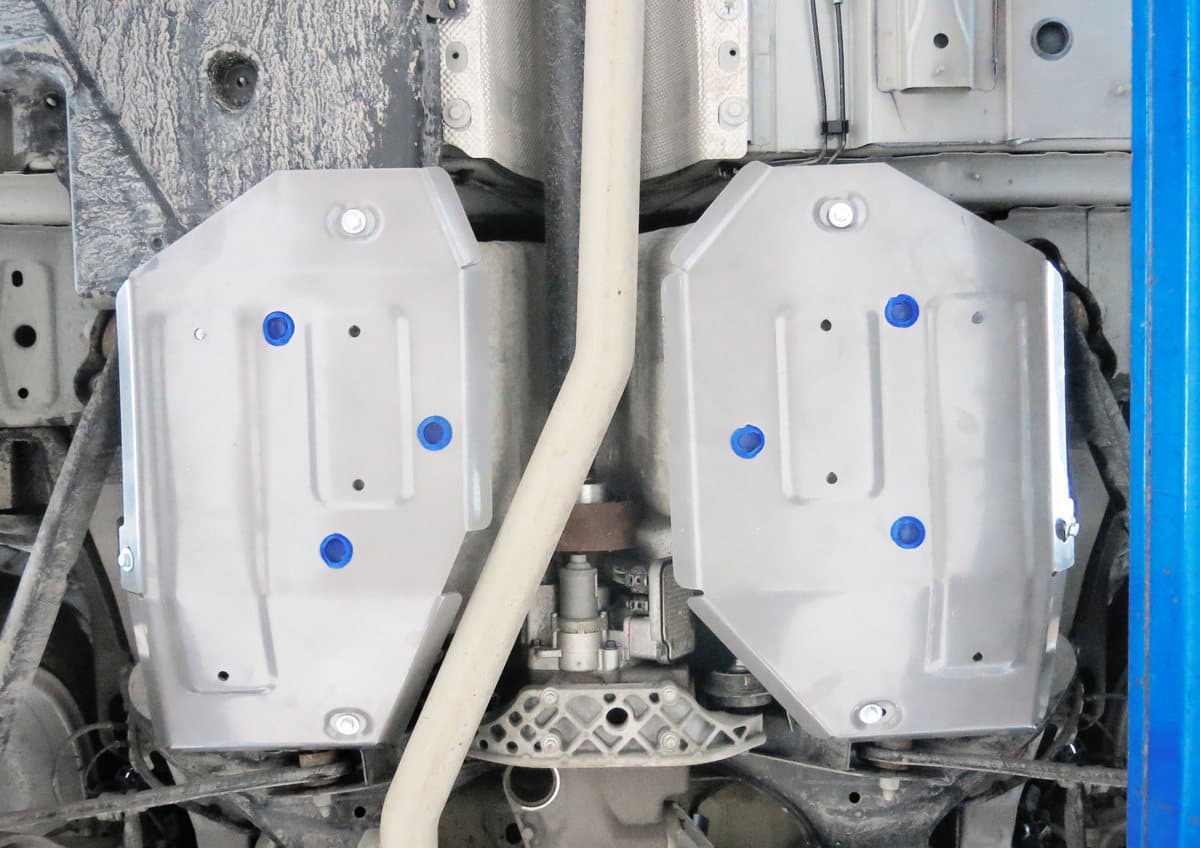 Стойкое порошковое окрашивание позволяет сохранить внешний вид, защитит от царапин, предотвратит коррозию. Также имеется утопленный крепеж для предотвращения срывов. Крепеж не образует с алюминием гальваническую пару. Защита спроектирована индивидуально для автомобиля, что позволяет устанавливать ее в штатные места без доработки кузова за 10 мин.
