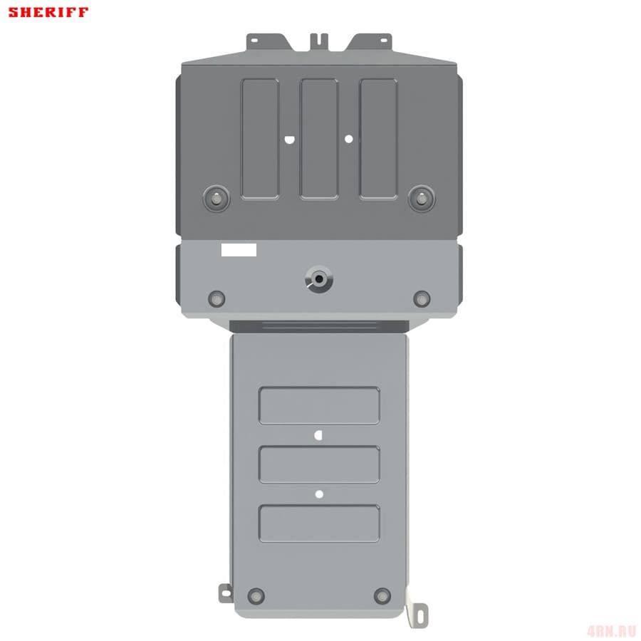 Защита картера Sheriff нужна для сохранности узлов и агрегатов, находящихся на днище авто. Она надежно защитит двигательный отсек вашего автомобиля от повреждений. Также она защищает моторный отсек от влаги и грязи, и предусматривает наличие металлических крыльев, которые выполняют функцию пыльника.