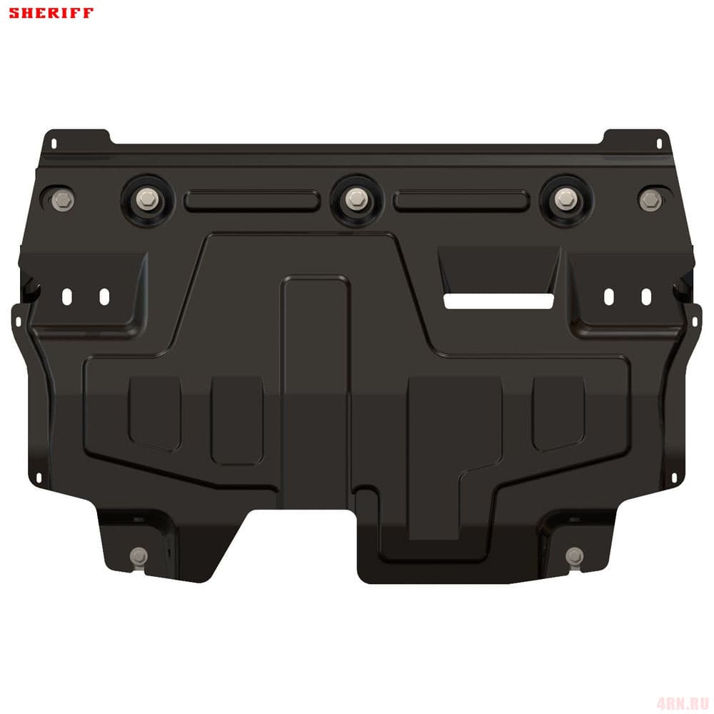 Защита картера Sheriff нужна для сохранности узлов и агрегатов, находящихся на днище авто. Она надежно защитит двигательный отсек вашей машины от повреждений. Также она защищает моторный отсек от влаги, грязи, и предусматривает наличие металлических крыльев, которые выполняют функцию пыльника.