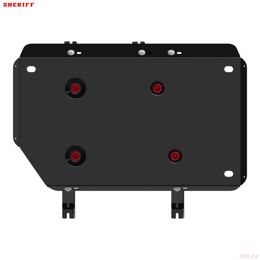 Защита картера Sheriff нужна для сохранности узлов и агрегатов, находящихся на днище авто. Она надежно защитит двигательный отсек вашей машины от повреждений. Также она защищает моторный отсек от влаги, грязи, и предусматривает наличие металлических крыльев, которые выполняют функцию пыльника.