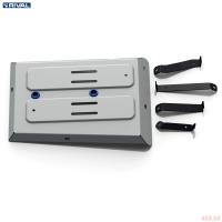 Стойкое порошковое окрашивание позволяет сохранить внешний вид, защитит от царапин, предотвратит коррозию. Также имеется утопленный крепеж для предотвращения срывов. Крепеж не образует с алюминием гальваническую пару. Защита спроектирована индивидуально для автомобиля, что позволяет устанавливать ее в штатные места без доработки кузова за 10 мин.