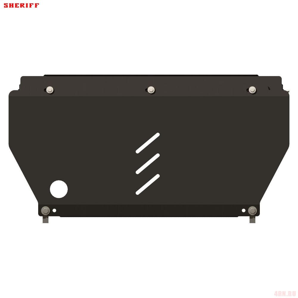 Защита картера Sheriff нужна для сохранности узлов и агрегатов, находящихся на днище авто. Она надежно защитит двигательный отсек вашей машины от повреждений. Также она защищает моторный отсек от влаги, грязи, и предусматривает наличие металлических крыльев, которые выполняют функцию пыльника.