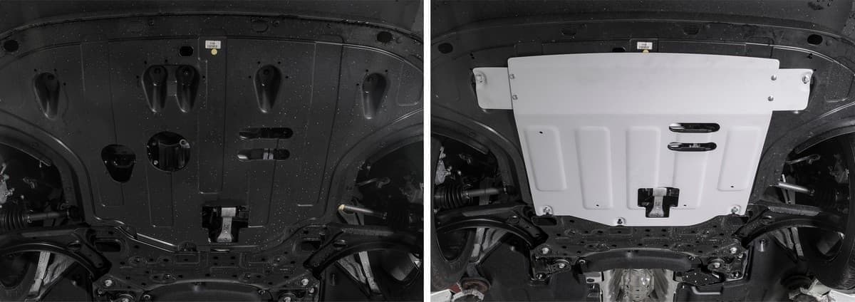 Стойкое порошковое окрашивание позволяет сохранить внешний вид, защитит от царапин, предотвратит коррозию. Также имеется утопленный крепеж для предотвращения срывов. Крепеж не образует с алюминием гальваническую пару. Защита спроектирована индивидуально для автомобиля, что позволяет устанавливать ее в штатные места без доработки кузова за 10 мин.