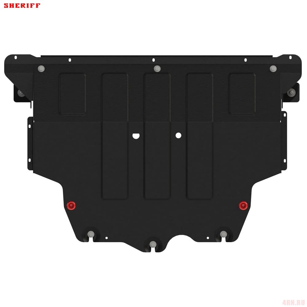 Защита картера Sheriff нужна для сохранности узлов и агрегатов, находящихся на днище авто. Она надежно защитит двигательный отсек вашей машины от повреждений. Также она защищает моторный отсек от влаги, грязи, и предусматривает наличие металлических крыльев, которые выполняют функцию пыльника.