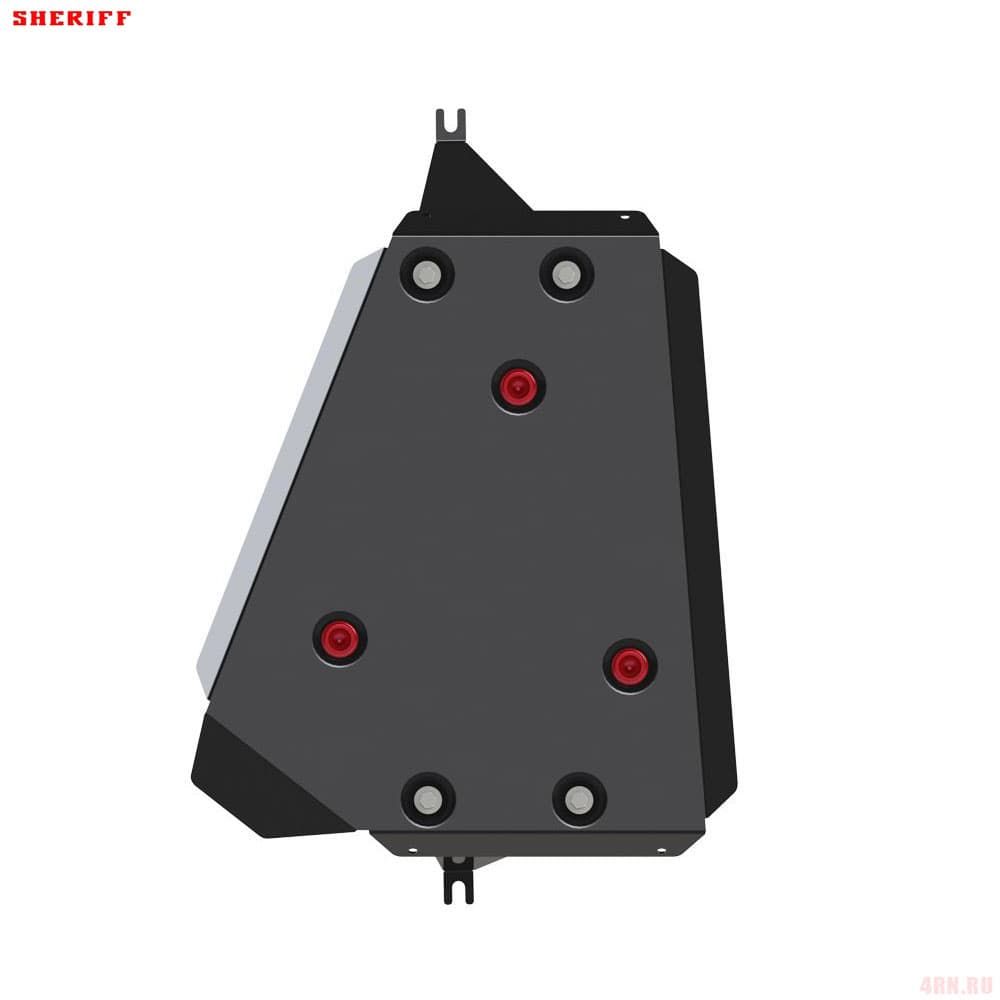 Защита картера Sheriff нужна для сохранности узлов и агрегатов, находящихся на днище авто. Она надежно защитит двигательный отсек вашей машины от повреждений. Также она защищает моторный отсек от влаги, грязи, и предусматривает наличие металлических крыльев, которые выполняют функцию пыльника.