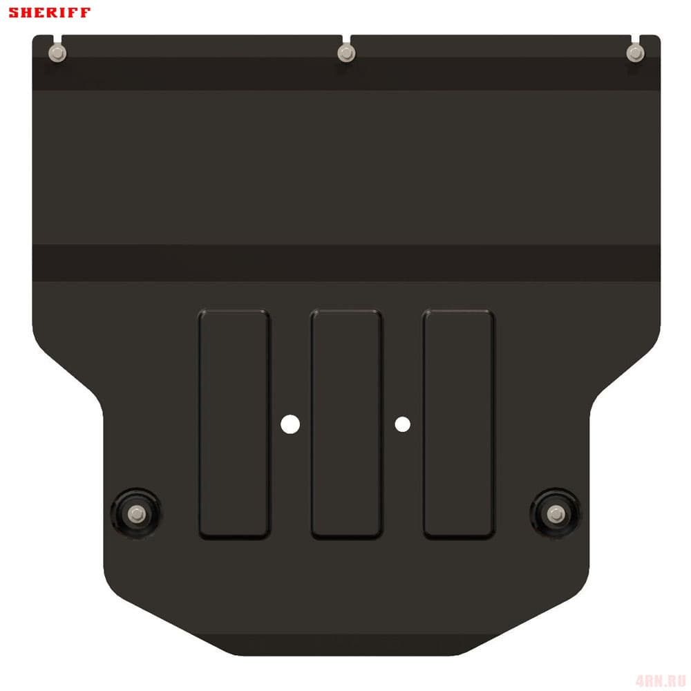 Защита картера Sheriff нужна для сохранности узлов и агрегатов, находящихся на днище авто. Она надежно защитит двигательный отсек вашей машины от повреждений. Также она защищает моторный отсек от влаги, грязи, и предусматривает наличие металлических крыльев, которые выполняют функцию пыльника.