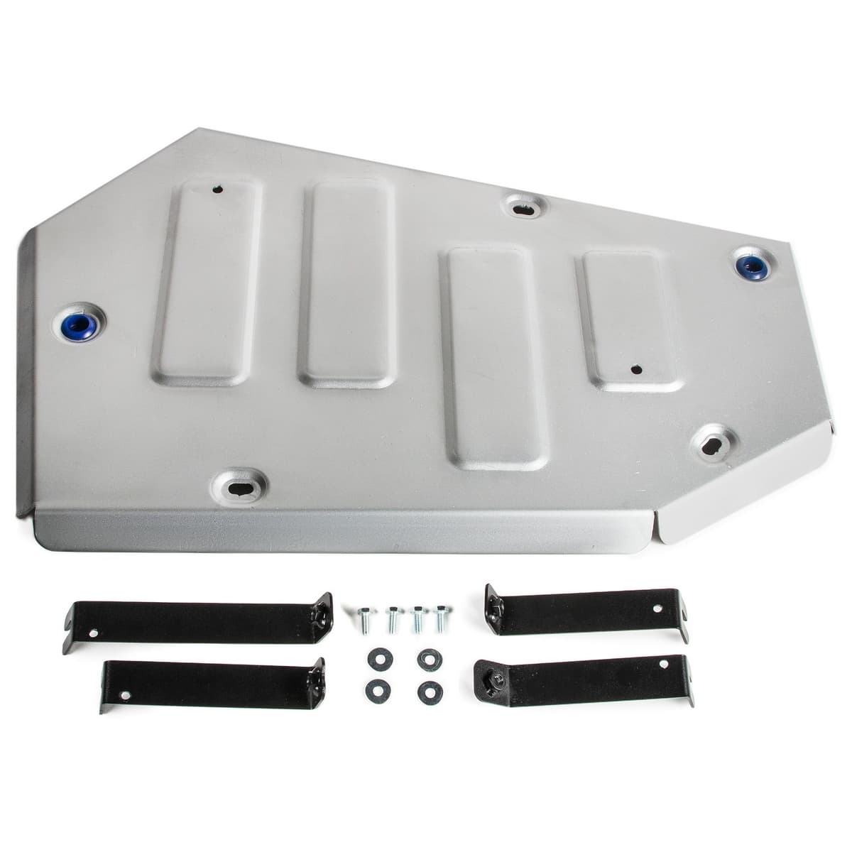 Алюминиевая защита топливного бака с крепежом в комплекте, артикул 333.0354.1 от российского бренда Риваль. Разработана специально для автомобиля Audi Q3 2019-2020.