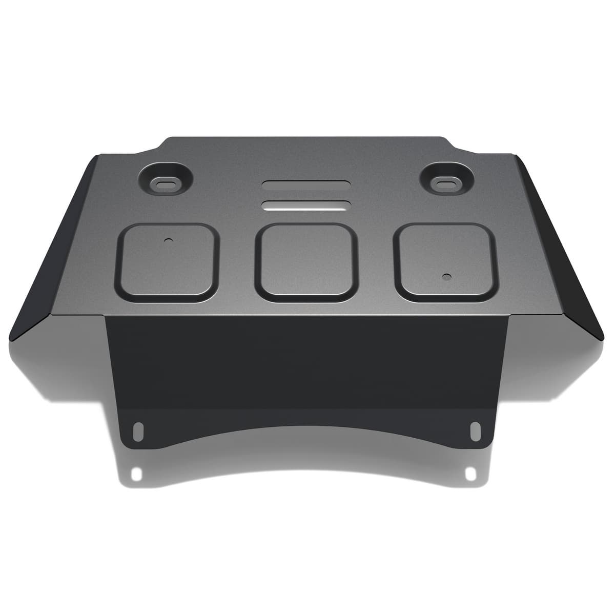 Порошковое окрашивание гарантирует долгий срок службы. А глубокий штамп увеличивает жесткость до 2,5 раз. Также имеется утопленный крепеж для предотвращения срывов. Качественная покраска защиты картера выдерживает 720 часов соляного тумана. Толщина изделия составляет 2-6 мм. Подштамповка в местах крепления предохраняет крепеж от срезания. Деталь спроектирована индивидуально для вашего автомобиля, что позволяет устанавливать ее в штатные места без доработки кузова за 10 мин.