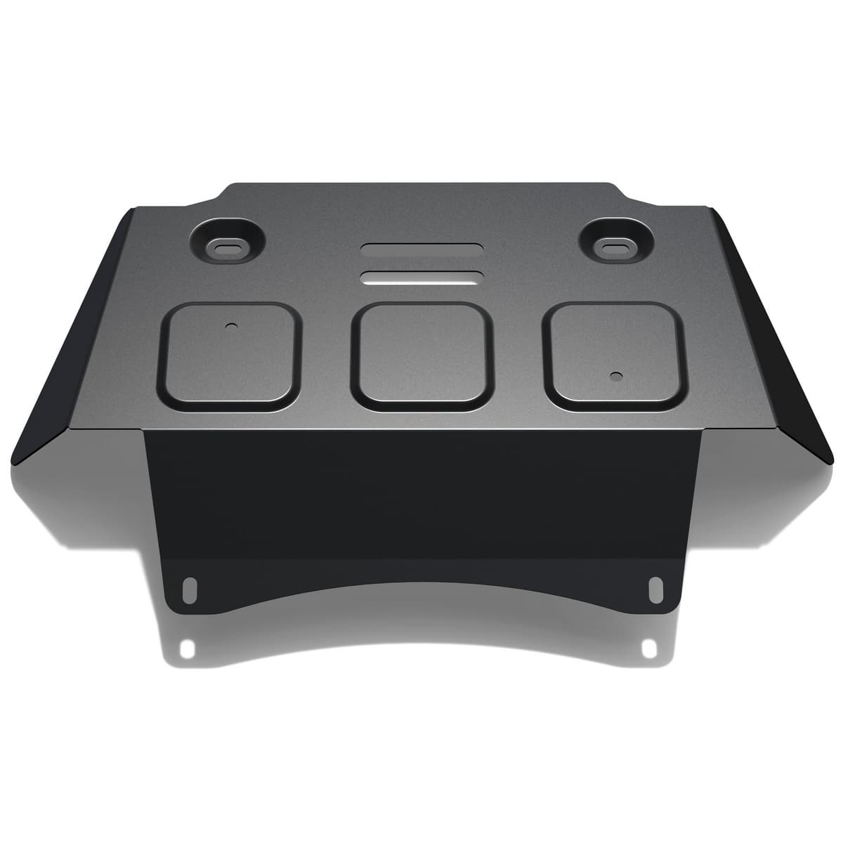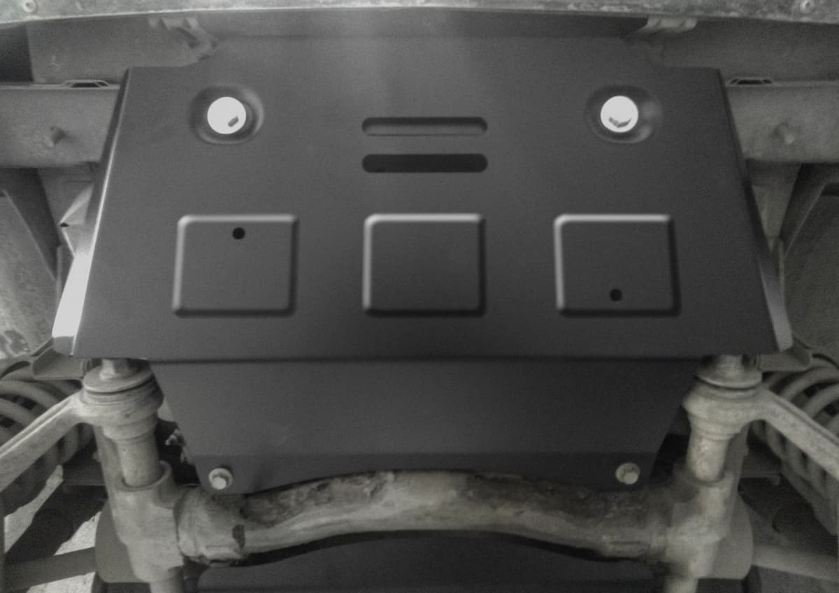 Порошковое окрашивание гарантирует долгий срок службы. А глубокий штамп увеличивает жесткость до 2,5 раз. Также имеется утопленный крепеж для предотвращения срывов. Качественная покраска защиты картера выдерживает 720 часов соляного тумана. Толщина изделия составляет 2-6 мм. Подштамповка в местах крепления предохраняет крепеж от срезания. Деталь спроектирована индивидуально для вашего автомобиля, что позволяет устанавливать ее в штатные места без доработки кузова за 10 мин.
