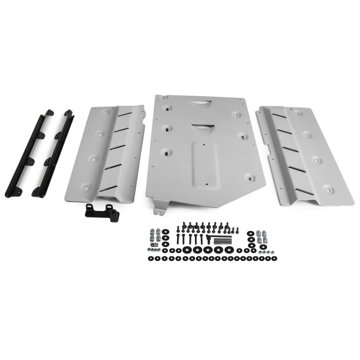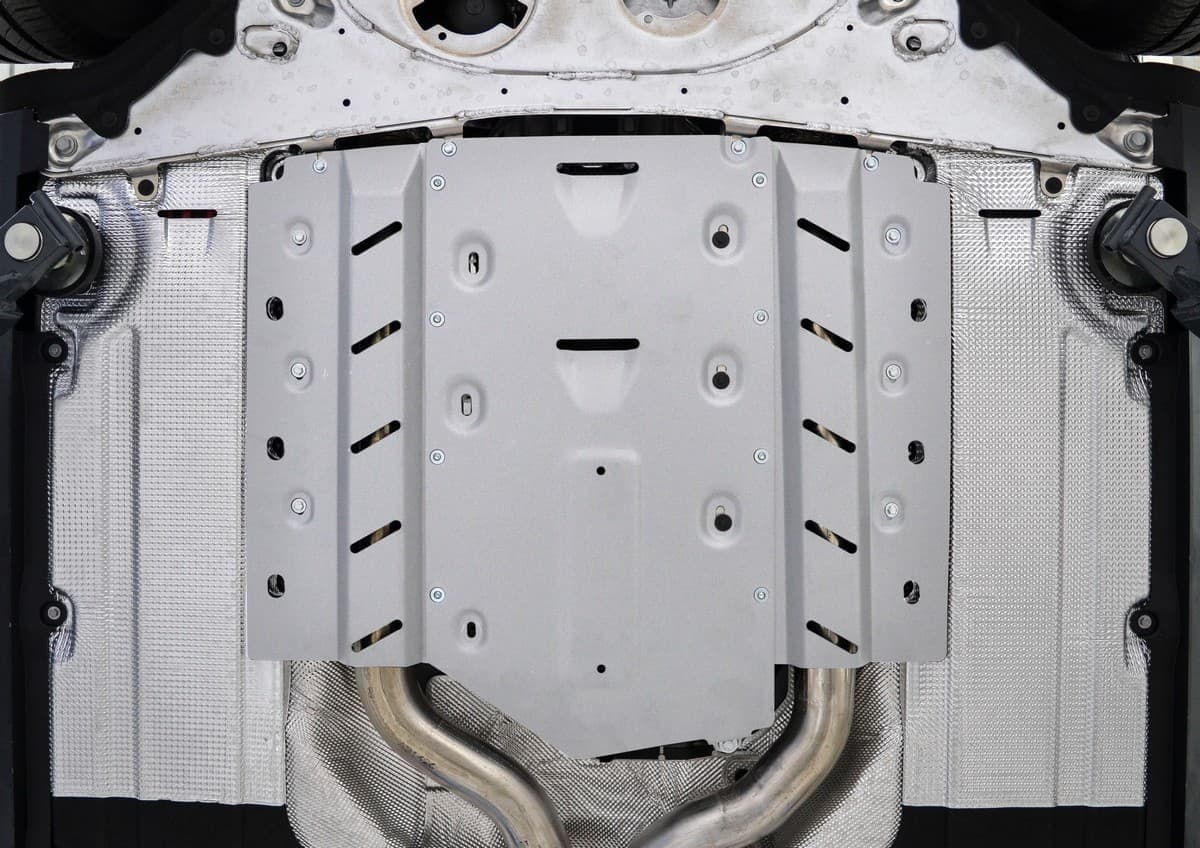 Стойкое порошковое окрашивание позволяет сохранить внешний вид, защитит от царапин, предотвратит коррозию. Также имеется утопленный крепеж для предотвращения срывов. Крепеж не образует с алюминием гальваническую пару. Защита спроектирована индивидуально для автомобиля, что позволяет устанавливать ее в штатные места без доработки кузова за 10 мин.