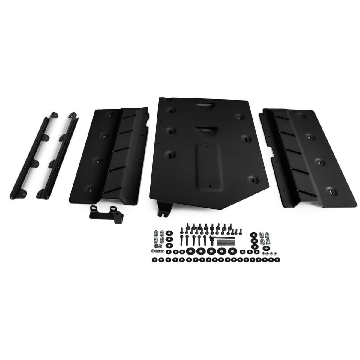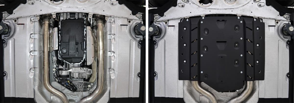 Стойкое порошковое окрашивание позволяет сохранить внешний вид, защитит от царапин, предотвратит коррозию. Также имеется утопленный крепеж для предотвращения срывов. Крепеж не образует с алюминием гальваническую пару. Защита спроектирована индивидуально для автомобиля, что позволяет устанавливать ее в штатные места без доработки кузова за 10 мин.