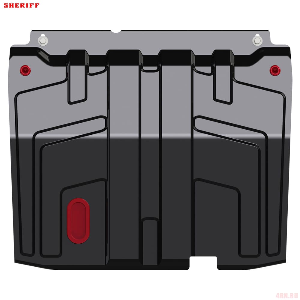 Защита картера Sheriff нужна для сохранности узлов и агрегатов, находящихся на днище авто. Она надежно защитит двигательный отсек вашей машины от повреждений. Также она защищает моторный отсек от влаги, грязи, и предусматривает наличие металлических крыльев, которые выполняют функцию пыльника.