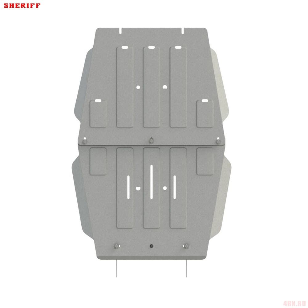 Защита картера Sheriff нужна для сохранности узлов и агрегатов, находящихся на днище авто. Она надежно защитит двигательный отсек вашей машины от повреждений. Также она защищает моторный отсек от влаги, грязи, и предусматривает наличие металлических крыльев, которые выполняют функцию пыльника.
