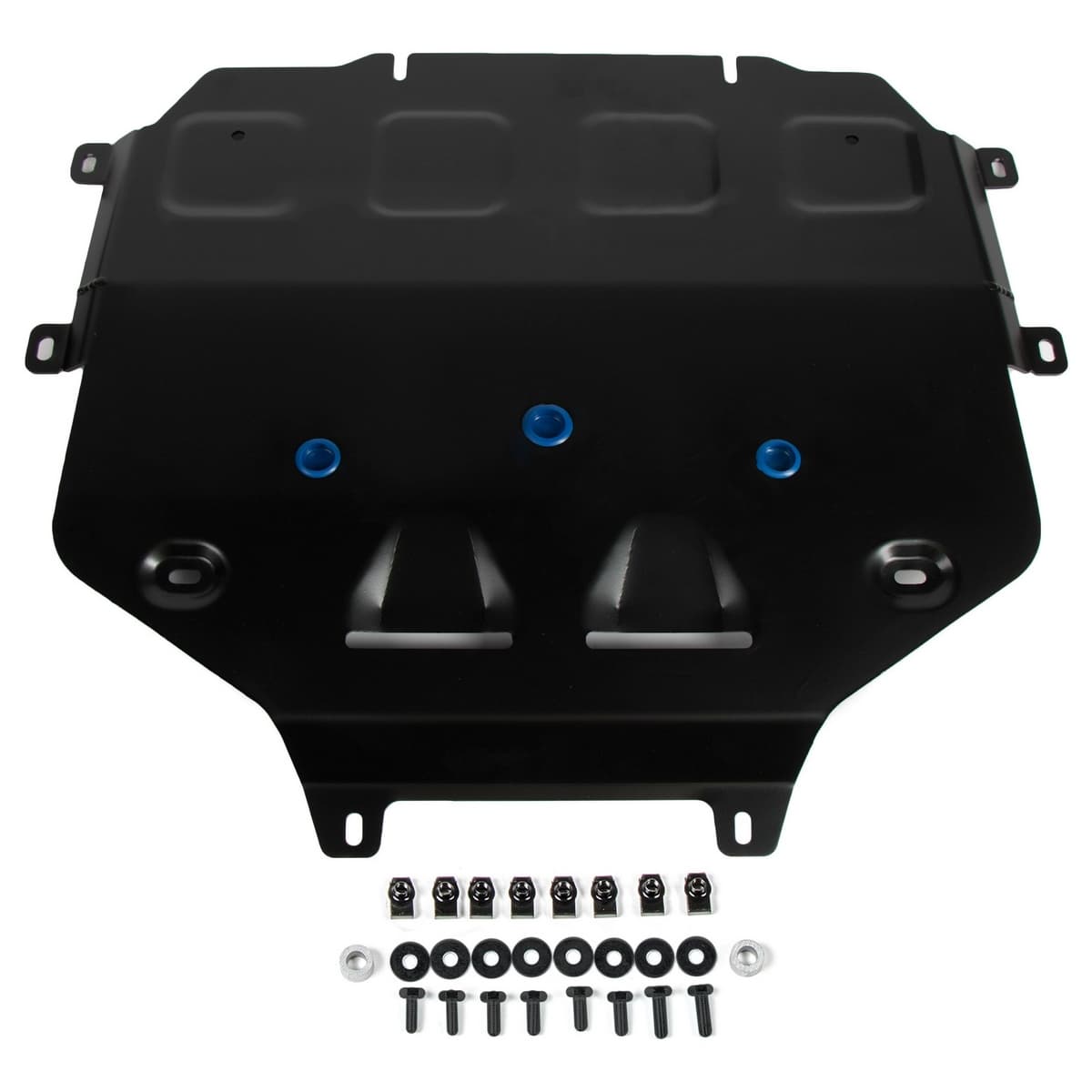 Стойкое порошковое окрашивание позволяет сохранить внешний вид, защитит от царапин, предотвратит коррозию. Также имеется утопленный крепеж для предотвращения срывов. Крепеж не образует с алюминием гальваническую пару. Защита спроектирована индивидуально для автомобиля, что позволяет устанавливать ее в штатные места без доработки кузова за 10 мин.