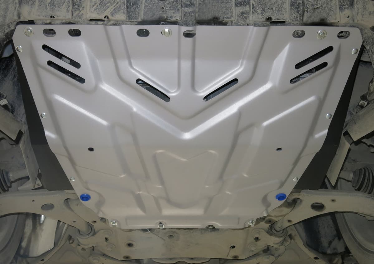 Стойкое порошковое окрашивание позволяет сохранить внешний вид, защитит от царапин, предотвратит коррозию. Также имеется утопленный крепеж для предотвращения срывов. Крепеж не образует с алюминием гальваническую пару. Защита спроектирована индивидуально для автомобиля, что позволяет устанавливать ее в штатные места без доработки кузова за 10 мин.