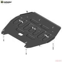 Защита двигателя и кпп артикул 71013 от российского производителя Мотодор. Разработана специально для автомобиля Kia K5 . Крепеж поставляется в комплекте. Стали толщиной 2,0 мм достаточно для городских и загородных условий дорог.