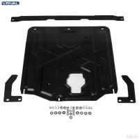 Порошковое окрашивание гарантирует долгий срок службы. А глубокий штамп увеличивает жесткость до 2,5 раз. Также имеется утопленный крепеж для предотвращения срывов. Качественная покраска защиты картера выдерживает 720 часов соляного тумана. Толщина изделия составляет 2-6 мм. Подштамповка в местах крепления предохраняет крепеж от срезания. Деталь спроектирована индивидуально для вашего автомобиля, что позволяет устанавливать ее в штатные места без доработки кузова за 10 мин.