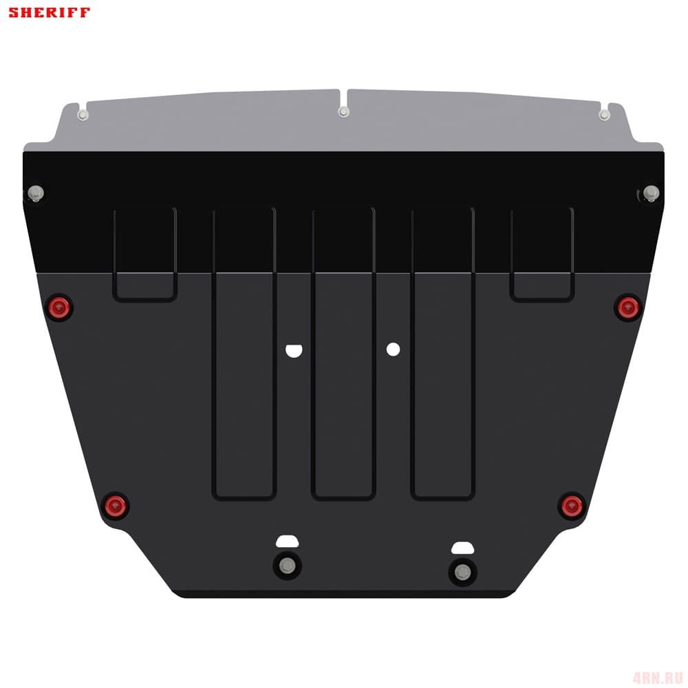 Защита картера Sheriff нужна для сохранности узлов и агрегатов, находящихся на днище авто. Она надежно защитит двигательный отсек вашей машины от повреждений. Также она защищает моторный отсек от влаги, грязи, и предусматривает наличие металлических крыльев, которые выполняют функцию пыльника.