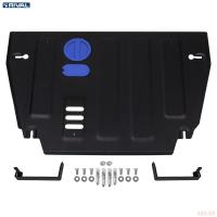 Порошковое окрашивание гарантирует долгий срок службы. А глубокий штамп увеличивает жесткость до 2,5 раз. Также имеется утопленный крепеж для предотвращения срывов. Качественная покраска защиты картера выдерживает 720 часов соляного тумана. Толщина изделия составляет 2-6 мм. Подштамповка в местах крепления предохраняет крепеж от срезания. Деталь спроектирована индивидуально для вашего автомобиля, что позволяет устанавливать ее в штатные места без доработки кузова за 10 мин.