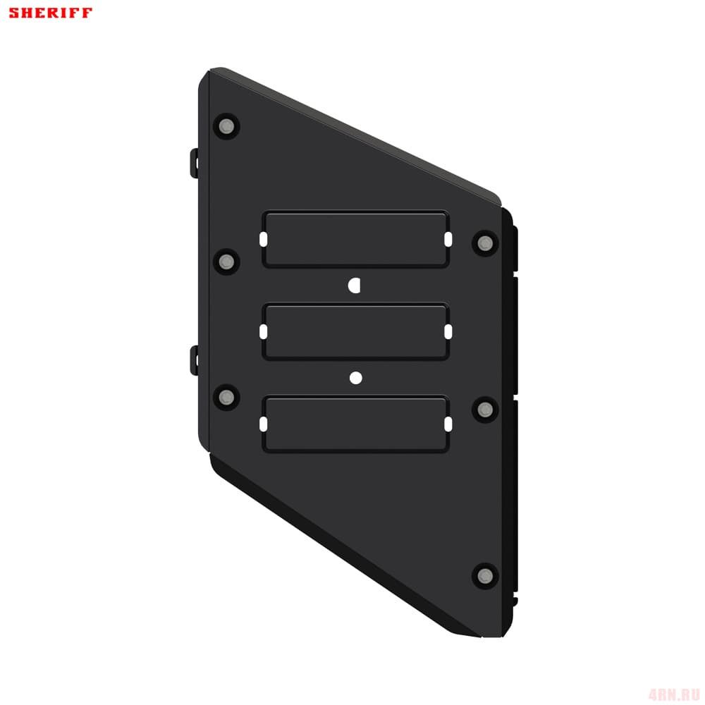 Защита картера Sheriff нужна для сохранности узлов и агрегатов, находящихся на днище авто. Она надежно защитит двигательный отсек вашей машины от повреждений. Также она защищает моторный отсек от влаги, грязи, и предусматривает наличие металлических крыльев, которые выполняют функцию пыльника.