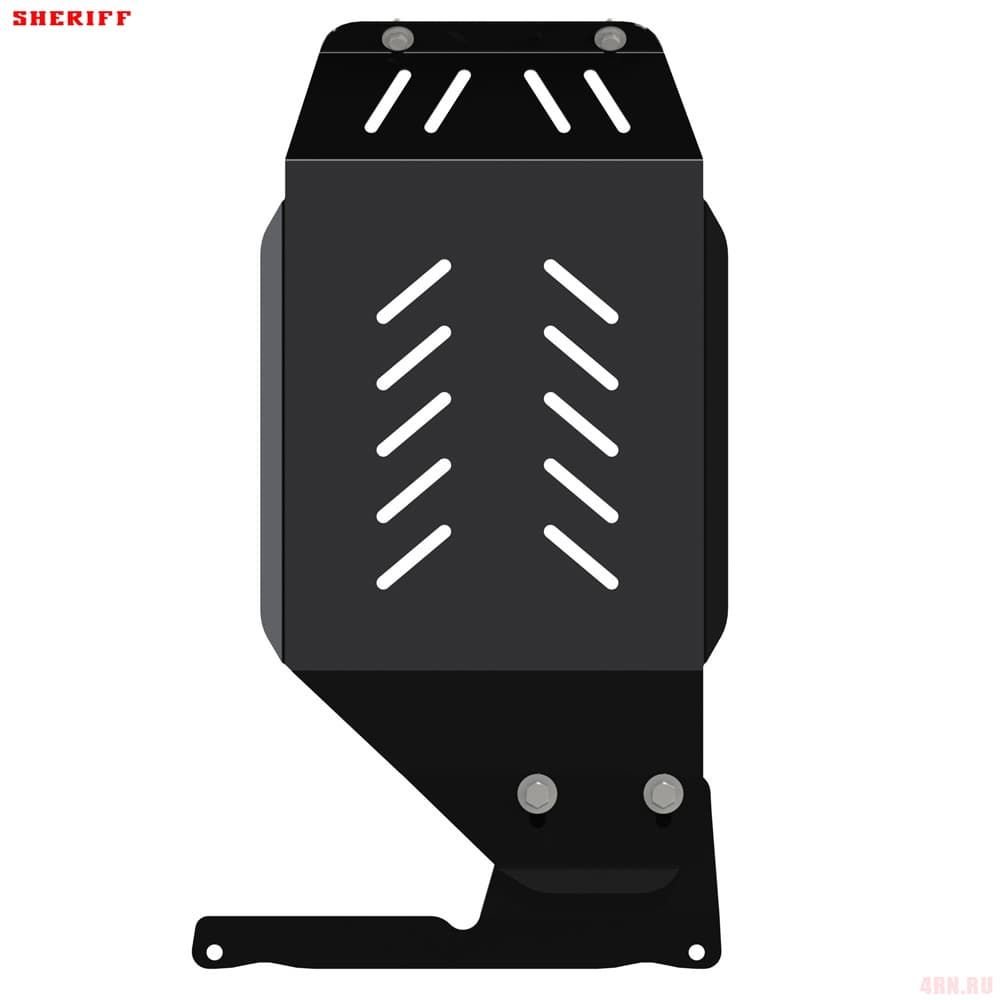Защита картера Sheriff нужна для сохранности узлов и агрегатов, находящихся на днище авто. Она надежно защитит двигательный отсек вашей машины от повреждений. Также она защищает моторный отсек от влаги, грязи, и предусматривает наличие металлических крыльев, которые выполняют функцию пыльника.