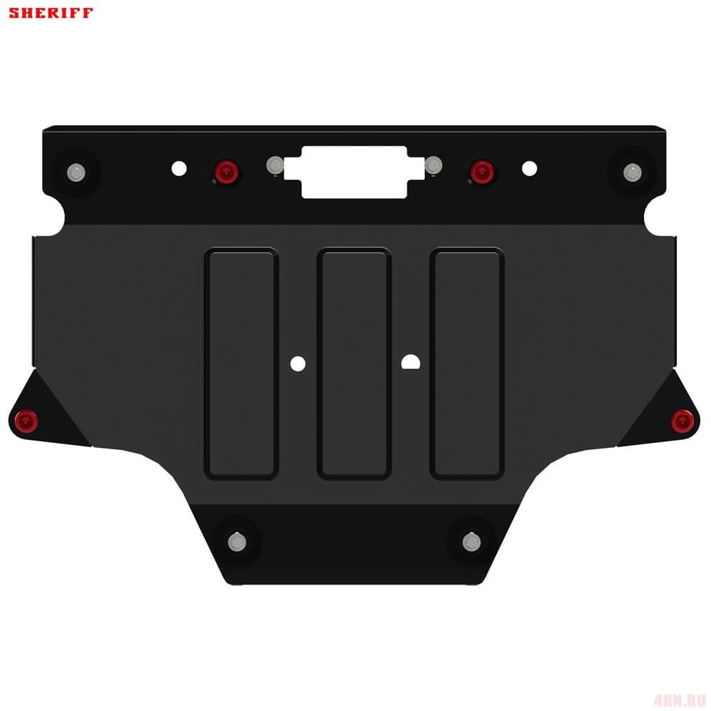 Защита картера Sheriff нужна для сохранности узлов и агрегатов, находящихся на днище авто. Она надежно защитит двигательный отсек вашей машины от повреждений. Также она защищает моторный отсек от влаги, грязи, и предусматривает наличие металлических крыльев, которые выполняют функцию пыльника.