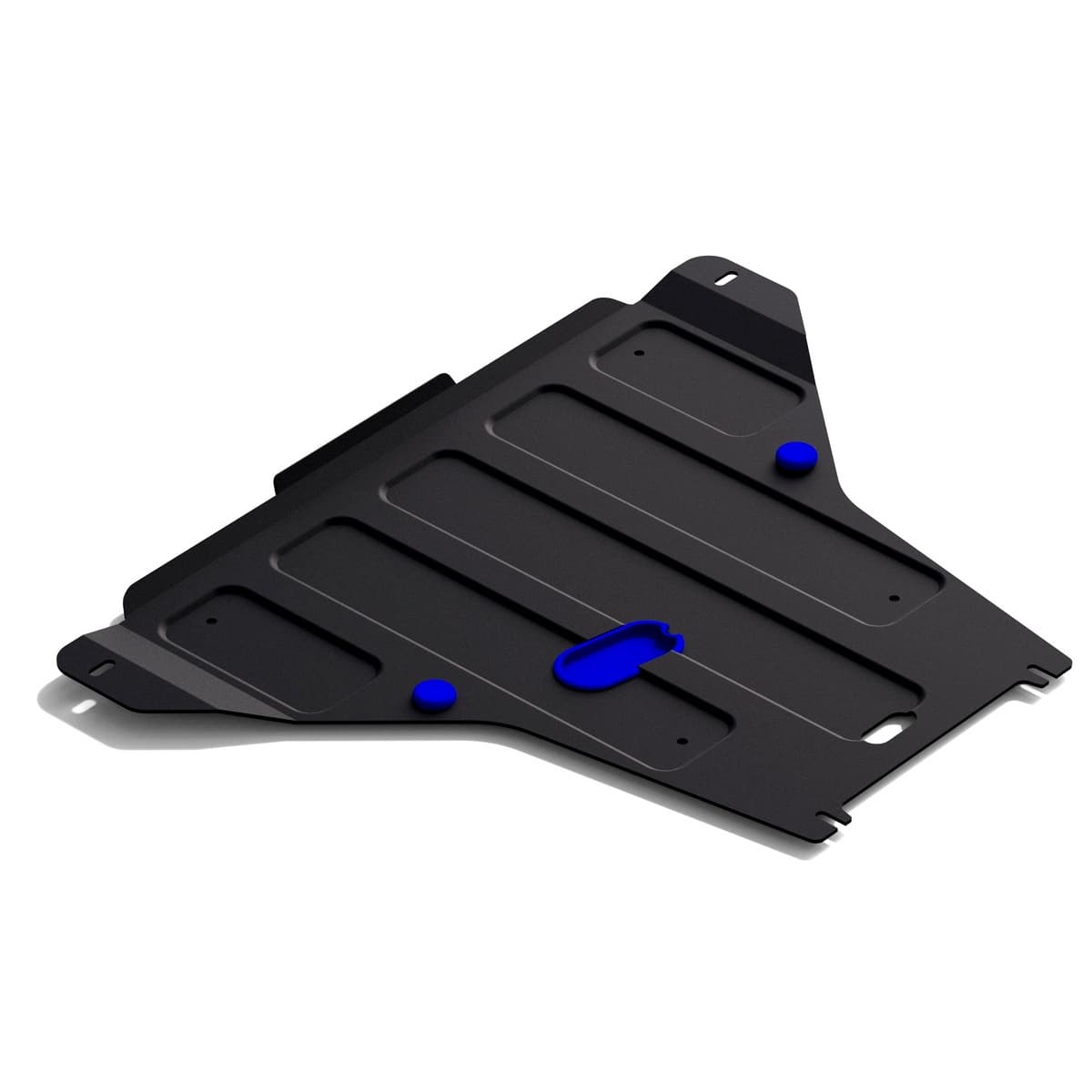 Порошковое окрашивание гарантирует долгий срок службы. А глубокий штамп увеличивает жесткость до 2,5 раз. Также имеется утопленный крепеж для предотвращения срывов. Качественная покраска защиты картера выдерживает 720 часов соляного тумана. Толщина изделия составляет 2-6 мм. Подштамповка в местах крепления предохраняет крепеж от срезания. Деталь спроектирована индивидуально для вашего автомобиля, что позволяет устанавливать ее в штатные места без доработки кузова за 10 мин.