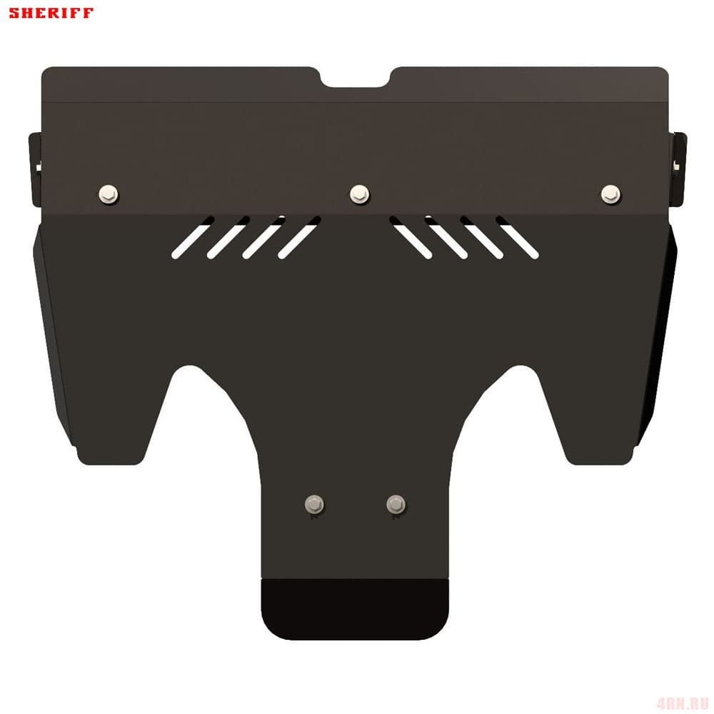 Защита картера Sheriff нужна для сохранности узлов и агрегатов, находящихся на днище авто. Она надежно защитит двигательный отсек вашей машины от повреждений. Также она защищает моторный отсек от влаги, грязи, и предусматривает наличие металлических крыльев, которые выполняют функцию пыльника.