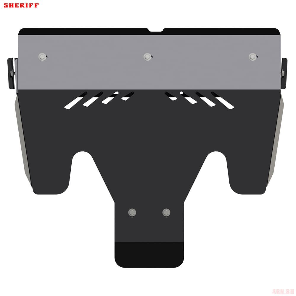 Защита картера Sheriff нужна для сохранности узлов и агрегатов, находящихся на днище авто. Она надежно защитит двигательный отсек вашей машины от повреждений. Также она защищает моторный отсек от влаги, грязи, и предусматривает наличие металлических крыльев, которые выполняют функцию пыльника.