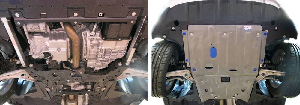Защита Rival произведена из высококачественного алюминия. Она надежно предохраняет днище вашего автомобиля от различных повреждений при наезде на бордюры, выступающие канализационные люки, кромки поврежденного асфальта или при ремонте дорог.
