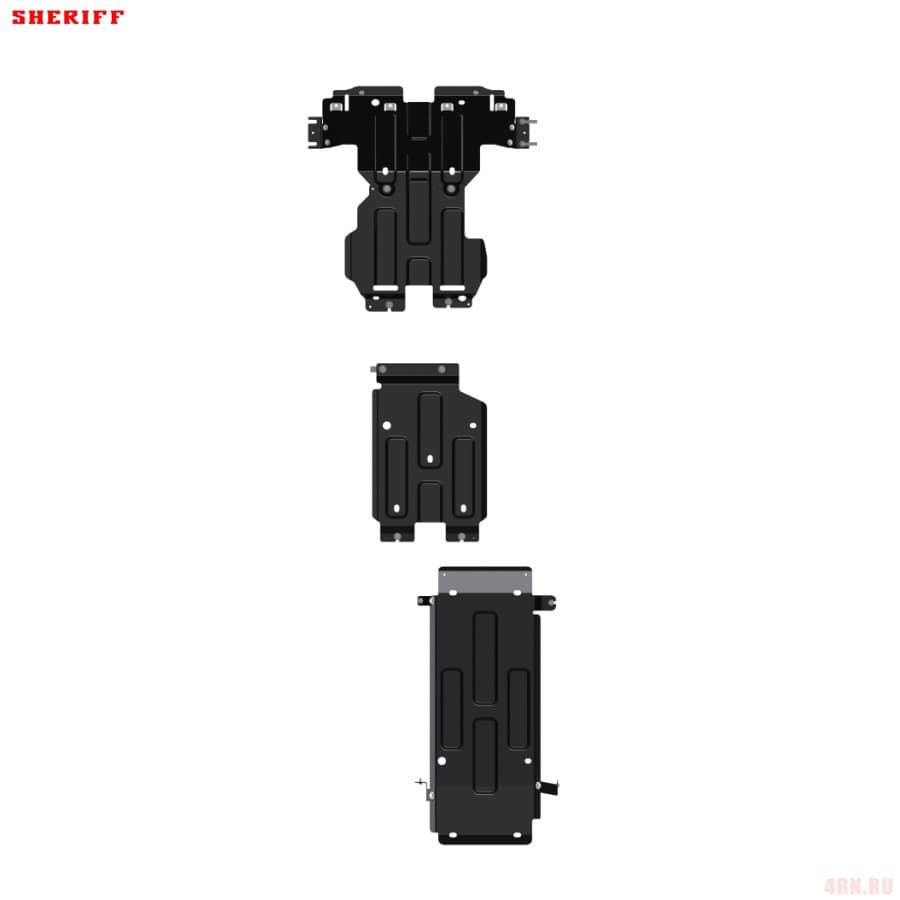 Защита картера Sheriff нужна для сохранности узлов и агрегатов, находящихся на днище авто. Она надежно защитит двигательный отсек вашей машины от повреждений. Также она защищает моторный отсек от влаги, грязи, и предусматривает наличие металлических крыльев, которые выполняют функцию пыльника.