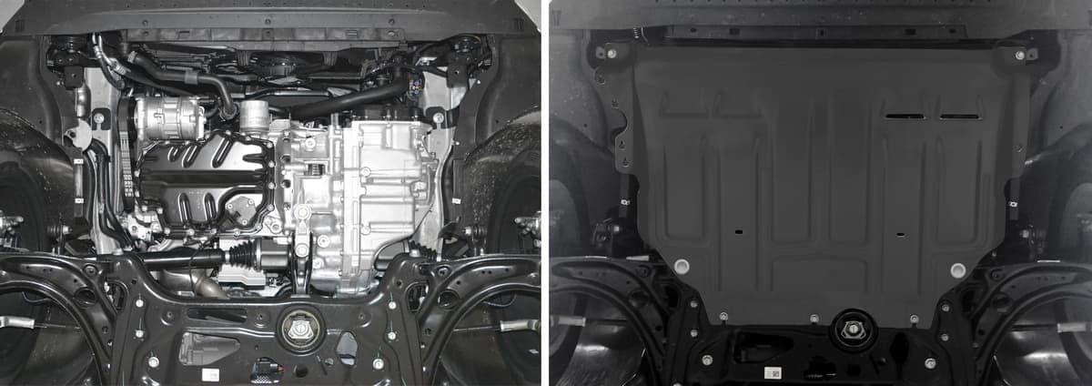 Защита картера и КПП артикул № AM.5128.1 от российского производителя AutoMax. Разработана специально для авто Volkswagen Jetta VII (2020-2021).