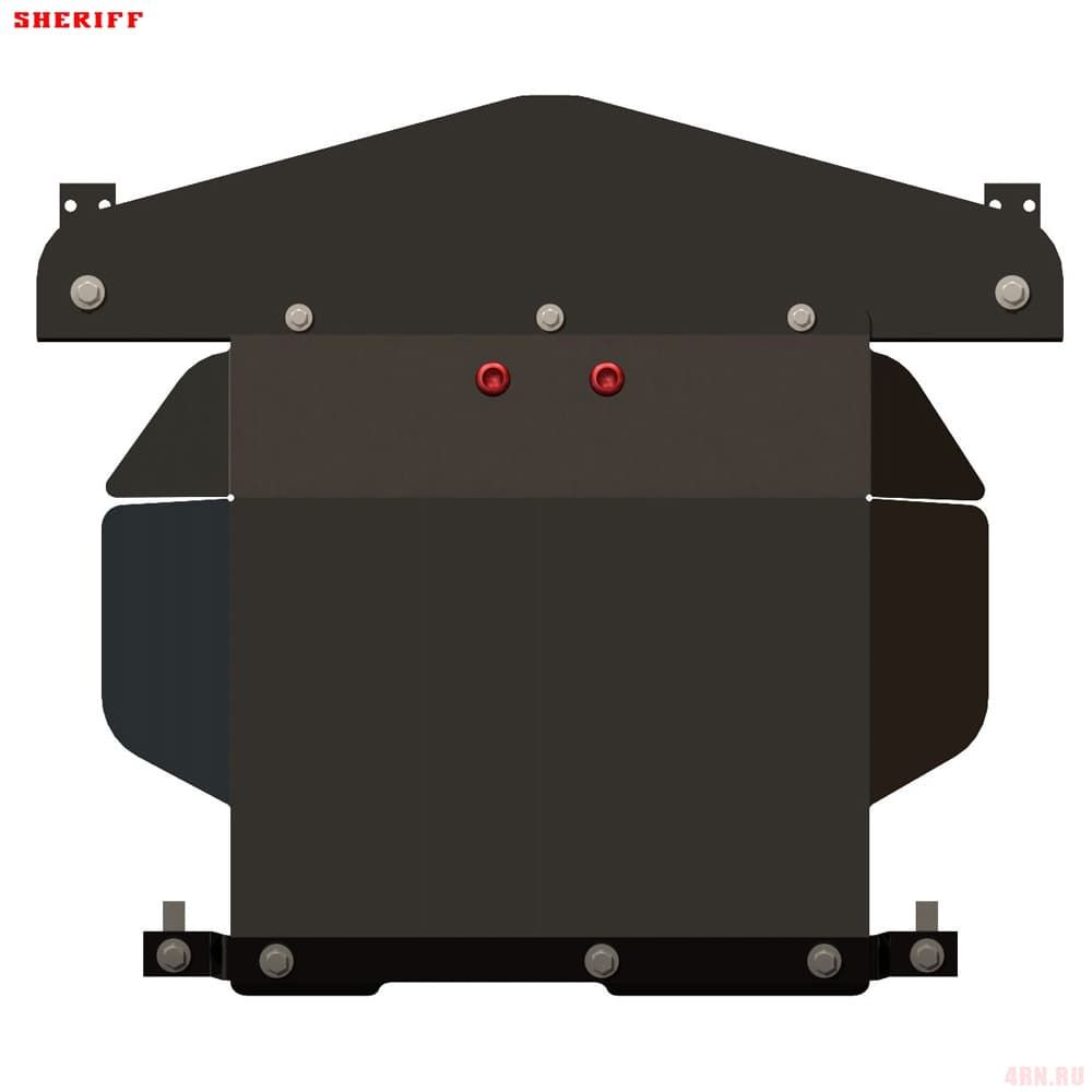 Защита картера Sheriff нужна для сохранности узлов и агрегатов, находящихся на днище авто. Она надежно защитит двигательный отсек вашей машины от повреждений. Также она защищает моторный отсек от влаги, грязи, и предусматривает наличие металлических крыльев, которые выполняют функцию пыльника.
