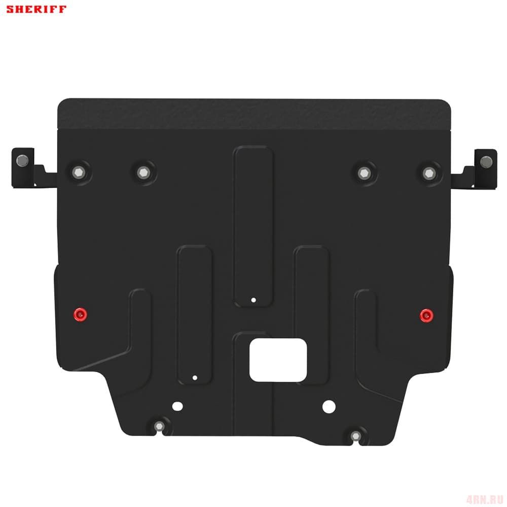 Защита картера Sheriff нужна для сохранности узлов и агрегатов, находящихся на днище авто. Она надежно защитит двигательный отсек вашей машины от повреждений. Также она защищает моторный отсек от влаги, грязи, и предусматривает наличие металлических крыльев, которые выполняют функцию пыльника.