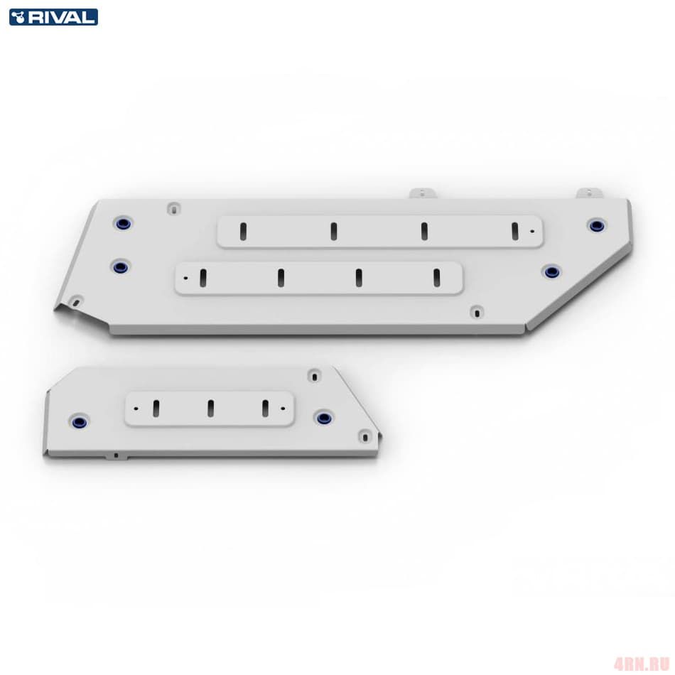Алюминиевая защита топливного бака с крепежом в комплекте, артикул 333.9554.1 от российского бренда Риваль. Разработана специально для автомобиля Toyota Land Cruiser 2021-.