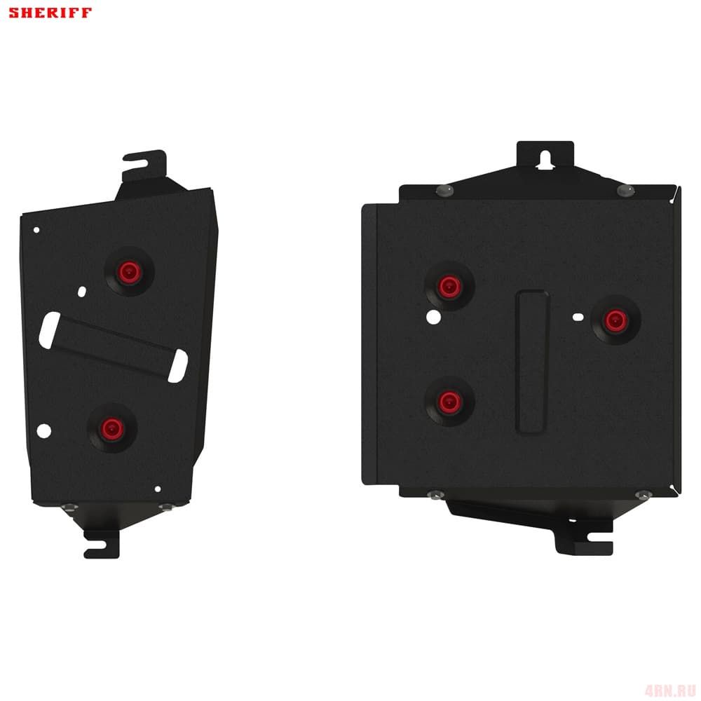 Защита картера Sheriff нужна для сохранности узлов и агрегатов, находящихся на днище авто. Она надежно защитит двигательный отсек вашей машины от повреждений. Также она защищает моторный отсек от влаги, грязи, и предусматривает наличие металлических крыльев, которые выполняют функцию пыльника.