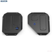 Порошковое окрашивание гарантирует долгий срок службы. А глубокий штамп увеличивает жесткость до 2,5 раз. Также имеется утопленный крепеж для предотвращения срывов. Качественная покраска защиты картера выдерживает 720 часов соляного тумана. Толщина изделия составляет 2-6 мм. Подштамповка в местах крепления предохраняет крепеж от срезания. Деталь спроектирована индивидуально для вашего автомобиля, что позволяет устанавливать ее в штатные места без доработки кузова за 10 мин.
