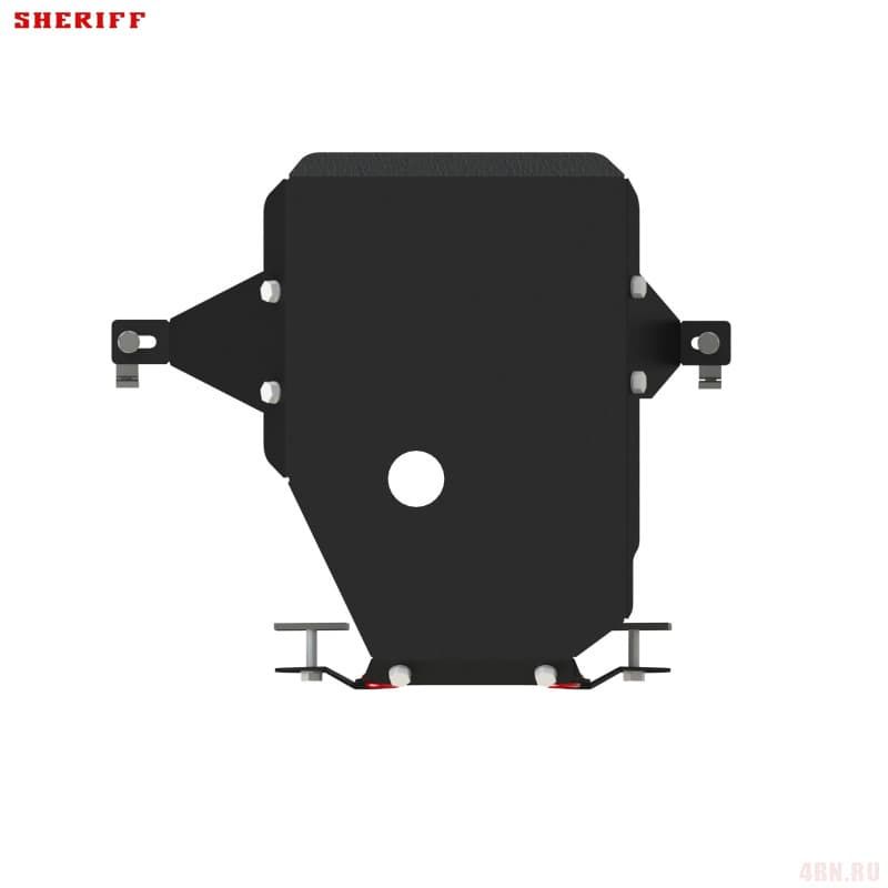 Защита картера Sheriff нужна для сохранности узлов и агрегатов, находящихся на днище авто. Она надежно защитит двигательный отсек вашей машины от повреждений. Также она защищает моторный отсек от влаги, грязи, и предусматривает наличие металлических крыльев, которые выполняют функцию пыльника.