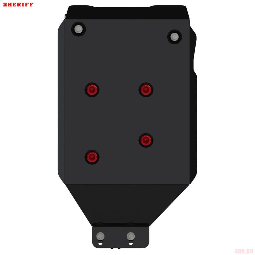 Защита картера Sheriff нужна для сохранности узлов и агрегатов, находящихся на днище авто. Она надежно защитит двигательный отсек вашей машины от повреждений. Также она защищает моторный отсек от влаги, грязи, и предусматривает наличие металлических крыльев, которые выполняют функцию пыльника.