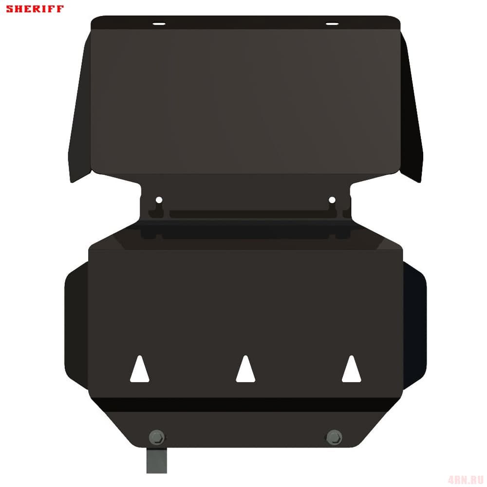 Защита картера Sheriff нужна для сохранности узлов и агрегатов, находящихся на днище авто. Она надежно защитит двигательный отсек вашей машины от повреждений. Также она защищает моторный отсек от влаги, грязи, и предусматривает наличие металлических крыльев, которые выполняют функцию пыльника.