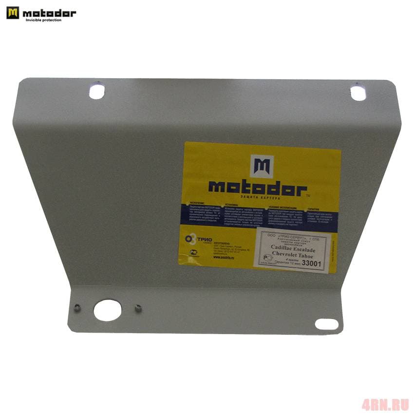 Алюминиевая защита двигателя, дифференциала, кпп, раздаточной коробки с крепежом в комплекте, артикул 33001 от российского производителя Мотодор. Разработана специально для автомобиля Chevrolet Tahoe 2006-2014.