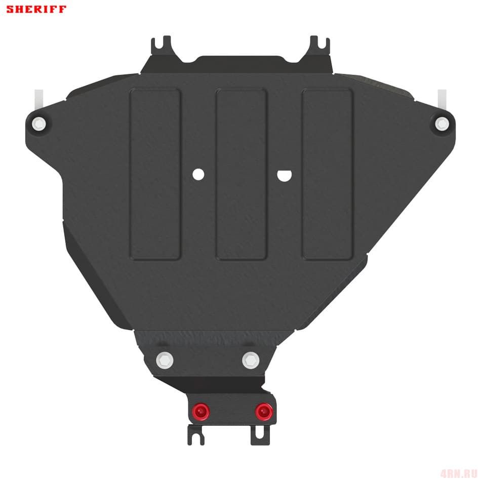 Защита картера Sheriff нужна для сохранности узлов и агрегатов, находящихся на днище авто. Она надежно защитит двигательный отсек вашей машины от повреждений. Также она защищает моторный отсек от влаги, грязи, и предусматривает наличие металлических крыльев, которые выполняют функцию пыльника.